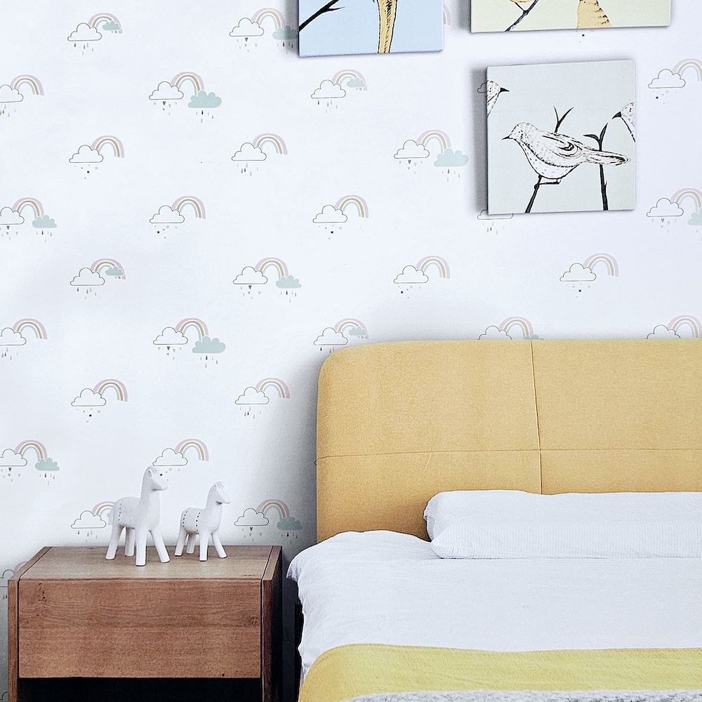 PAPEL DE PAREDE INFANTIL ARCO-ÍRIS ROSA E AZUL