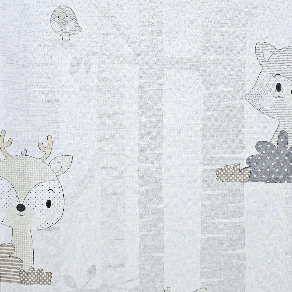 PAPEL DE PAREDE INFANTIL BICHINHOS BEGE E CINZA