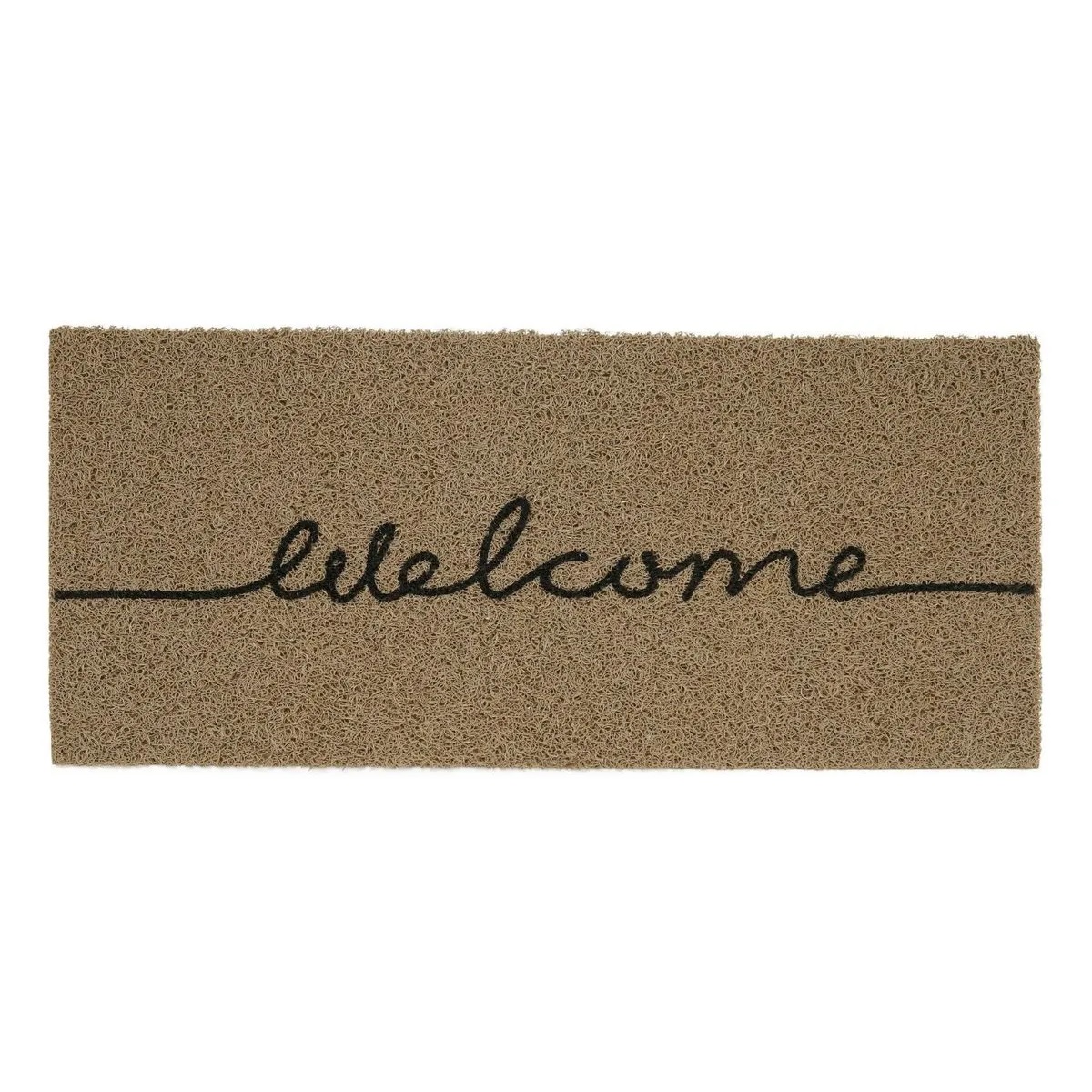 Tapete de Entrada Capacho Vinil Welcome 30cm x 70cm Bege